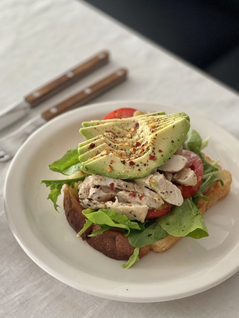 아보카도 닭가슴살 토마토 루꼴라 넣고 오픈샌드위치