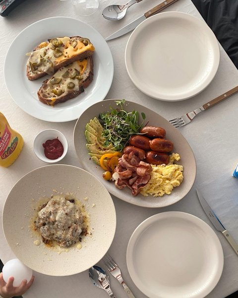 주말 브런치에요. 이것저것 싹 다 구워서 한그릇에 올리면 브런치잖아요?ㅋㅋㅋ 명절에 갈비찜 남은거에 밥 넣고 치즈 올려 만든 리조또?도 했어요. 식탁에 올라온 손 보이시나요?ㅋㅋㅋ 이렇게 차려놓고 바닥에 앉아서 먹고 스탠딩 파티 하고 그런거는 쉿 비밀..