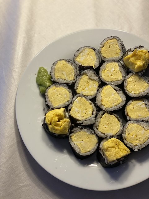 계란을 쯔유랑 설탕 넣고 말면 일본식 달달한 계란말이 맛이 나요. 쯔유 대신 간장 넣어도 되지만 색이 조금 까매진다는 점 - 밥은 초밥처럼 식초 넣고 만들어주면 요고 아주 맛있어요.