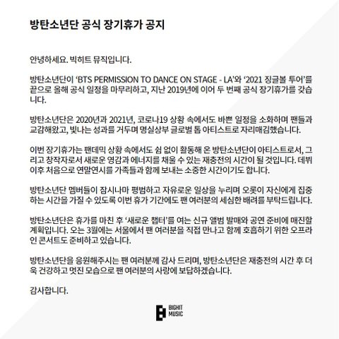 방탄 공식 장기휴가