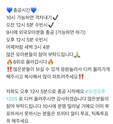 오늘 10시 10분에 8위인 ㅅㅂㅌ분들 총공하신다니까 긴장하고 열심히 투표해야해!!