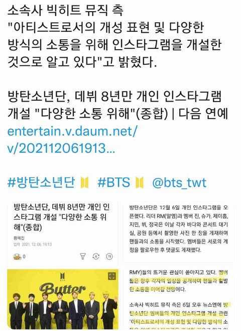 나 지금 아직도 안 믿겨 방탄이? 개인 인스타를?? ㅋㅋㅋㅋ