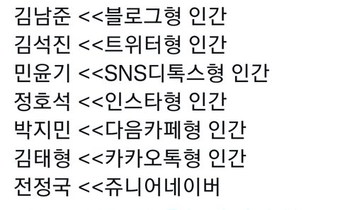 + sns로 보는 방탄 캐해