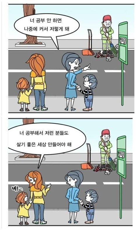 공부해서 저런분을 살기 좋은 세상을 만들어라. 난 이말이 선민의식 느껴져서 옛날부터 싫었음