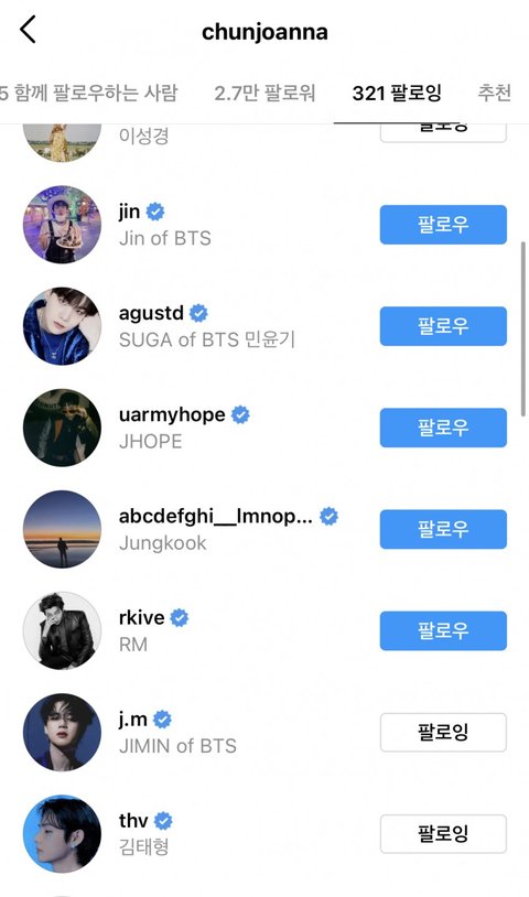 ? 지민이도 팔로했는데 니눈엔 태형이밖에 안보임?