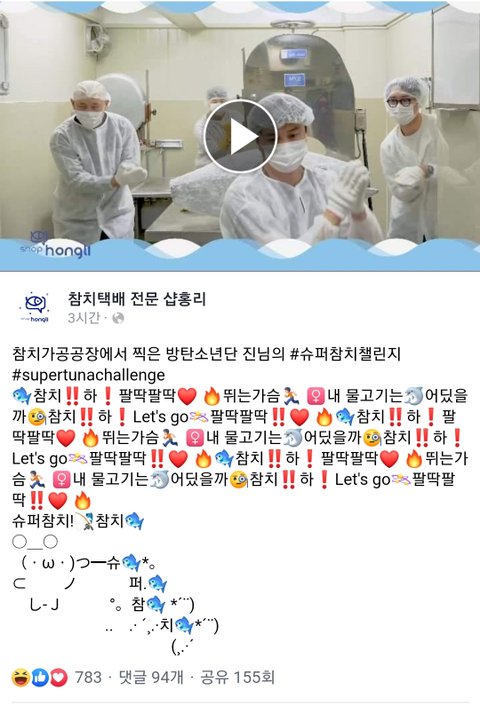 찐참치공장에서 방탄 진 슈퍼참치 챌린지 올라옴