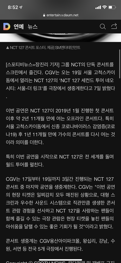 오 우리 콘 cgv에서 볼수있다