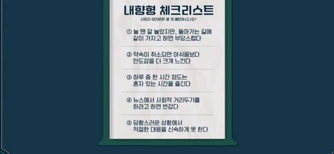 다섯 개의 체크리스트 중 몇 개가 해당되는지에 따라 내향인지 외향인지를 알 수 있대
