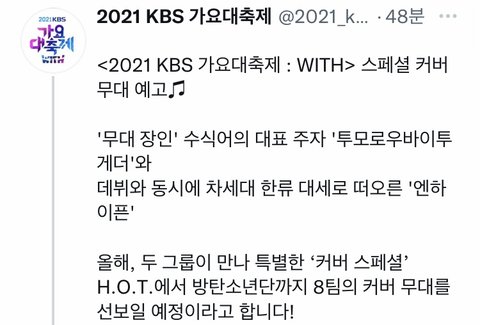 엔하이픈이랑 투바투 그룹 자체도 좋은데 애들끼리 브이앱에서 언급할때 보면 서로 친한거 같아서 너무 기대됨ㅠ