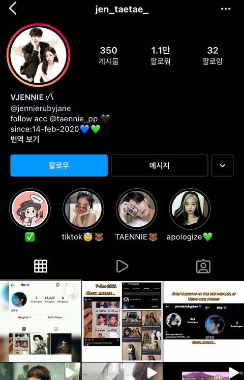 뷔 제니 망붕계정 난리남 ㄷㄷ