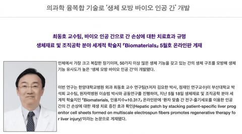 간의 생체구조를 모방한 인공 간을 개발.