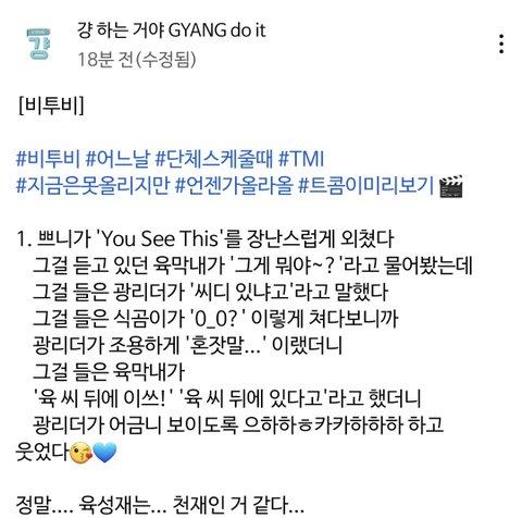 이런 모습 옛날 영상 말고 현재진행형으로 볼 수 있는거 실화냐 ㅜ.ㅅㅜ 너무 좋다ㅠㅠ