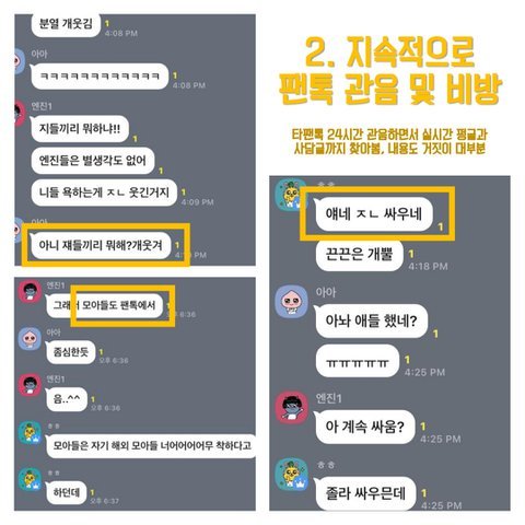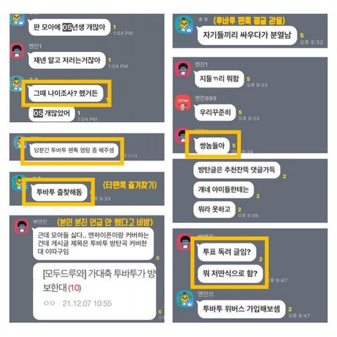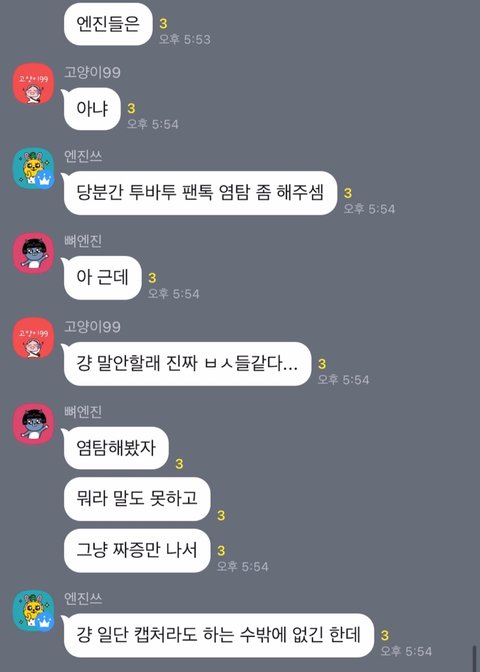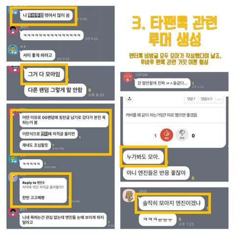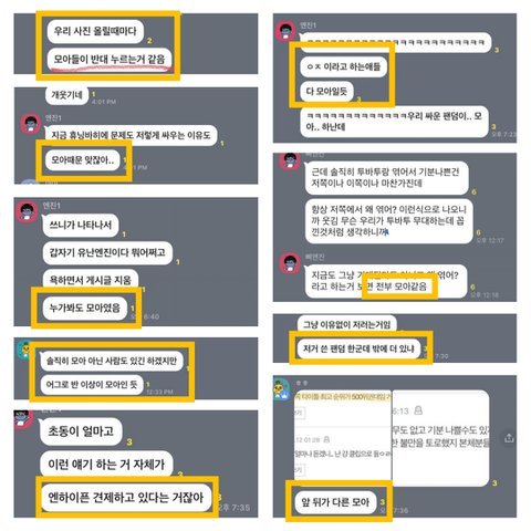 ㅊㅂ) 스벌 진짜 진심 타팬으로서 답답해서 하는 말인데 모아들 너무너무 유해.. 가만히 있다가 자꾸 역으로 당하게 되면 오히려 더 안좋아 진심,, 칠감즈 어머뿔즈때도 모아들이 다 총공 뜯어말렸다가 역으로 사소한거 가지고 지랄한다면서 욕처먹고.. 내 본진도 엔진들한테 까인적 있어서 그런가 제발 묻지말고 제대로 공론화 했으면 좋겠음. 본진한테 애꿎은 피해만 갈까봐 걱정되는건 이해하겠는데 가끔은 짚고 넘어갈건 짚고 넘어가야한다고 생각해ㅜㅜ 앞에 추반 붙인건 그냥 좀 많은 사람들이 봤음해서.. 보면 한번씩 추반 누르고 가줬으면 해