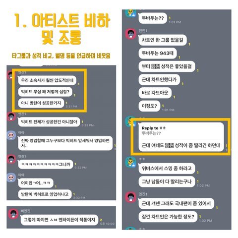 모안데 우리는 본체만 안건드리면 진짜 조용하게 넘어가 저번에 조합명 문제있었을때, 멤버 별명 문제 있었을때,표절논란있었을때 셋 상황 다 우리가 피해보는 입장이었지만 멤버들을 건드리진 않았고 괜히 일 크게 벌려봤자 별로 좋을일은 없으니까 팬들끼리 그냥 해결하고 그날 하루도 아니고 반나절 마플타고 끝났어 근데 이번은 진짜 참다참다 폭발한거고 본체도 건드렸잖아 사실 우리 이번에도 그냥 사과문만 받자는 의견이 더 많았어 근데 계속 이렇게하다간 우리 피해만 더 입을거라고,이런적이 한두번이 아니니까 이젠 공론화해야한다,본체를 건드렸는데 우리만 사과받으면 다냐 이런말 나와서 3시간동안 공론화 할까 말까 회의하다가 결국 공론화하기로 한거고 베댓내용도 최대한 감정 배제하고 객관적으로 쓴거야 우리는 진짜 본체만 안 건드리면 웬만하면 그냥 넘어가 근데 이번은 진짜 선을 넘어서 그래