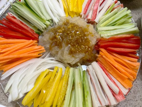 베이스는 양장피나 월남쌈이랑 비슷해서 쉬웠는데 해파리를 데치고 절여놓는 게 생각보다 어려웠어요!
