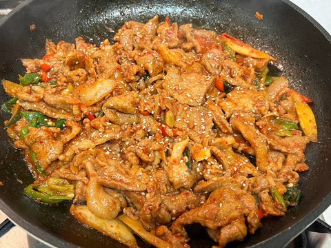 저는 맵찔이지만 저 빼고 다 매운 걸 좋아해서 청양고추+고춧가루 팍팍 넣고 만든 제육볶음이에요!