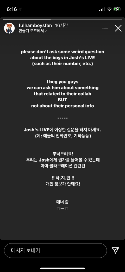 아니 근데 굳이 저런걸 스토리에 적어야하는건가.. 풀햄 애들한테 괜히 위기 조장만 하는건지 모르겠어..ㅋㅋ