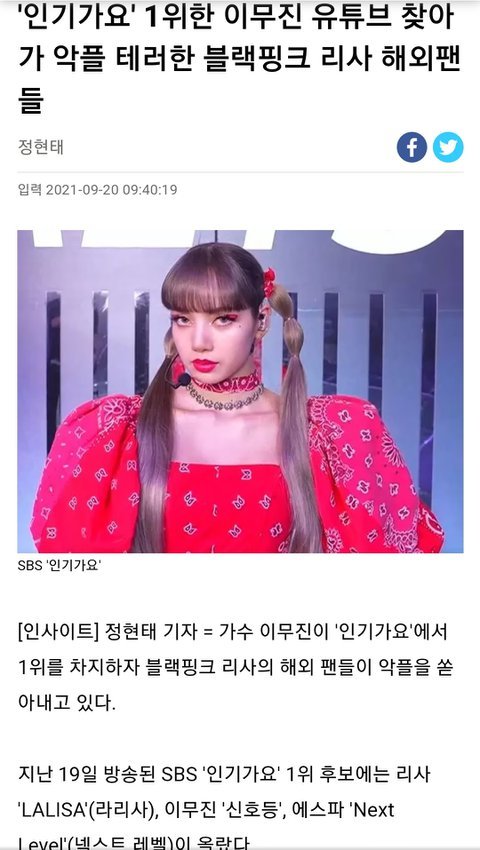 리사 동남아팬들 얼마전에 이무진땜에 인가 1위못했다고