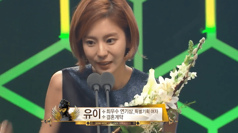 유이는 그리메상 최우수여자연기상을 수상함