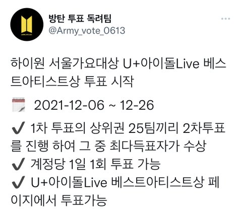 서7ㅏ대 베스트아티스트상 12/26까지 현재2위