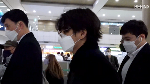 방탄소년단 뷔 (BTS V), 쫌 전 입국길 비주얼 '미모 원탑'