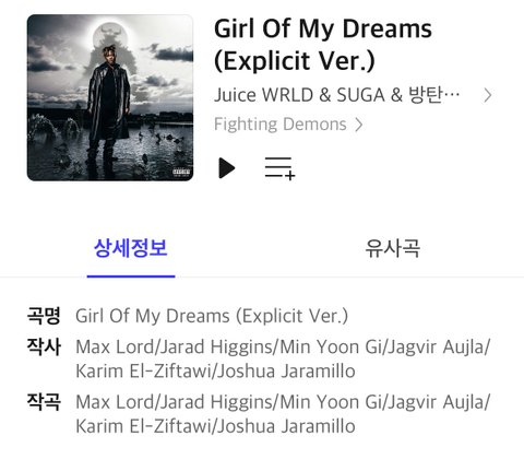 슈가와 주스월드의 girl of my dreams 많관부!!!