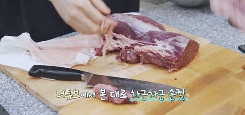제작진이 한우 부위별로 나눠서 덩어리째로 갖다놓음
