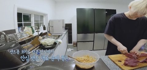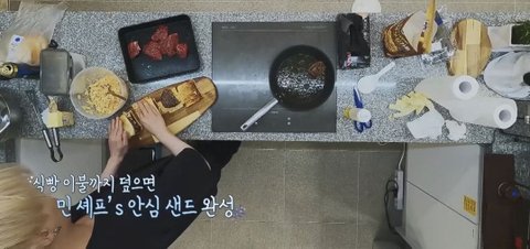 민셰프가 안심 들어간 샌드위치 재료 준비하고