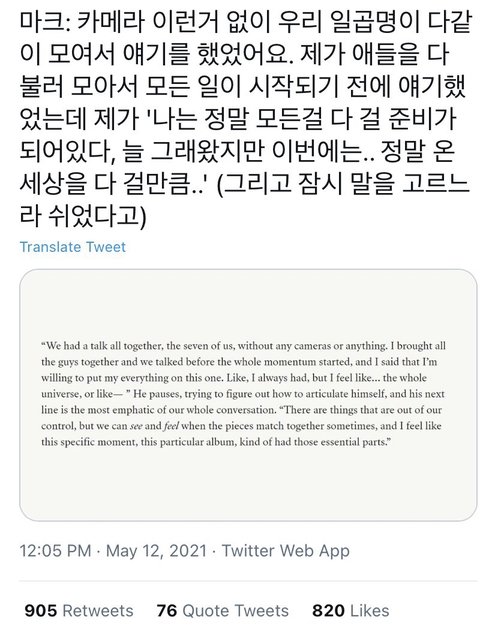 이런식으로 멤버들 관계성이나 성격 같은 거 느껴지는 따수운 일화? 인터뷰 같은 거... 그냥 멤버 개인 성격 보이는 인터뷰도 좋고 아무렴 좋아!!!!! 아직 최애 못 정했을 정도로 7명 다 좋아서ㅠ 꼭 짤이 아니더라도 인터뷰 링크 이런 것두 좋앙 드림 최근에 입덕했는데 팀 자체가 넘 따숩다