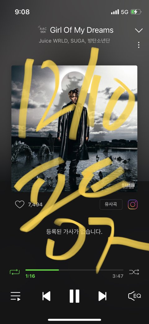 속보)김석진, 한잔해 상대 뷔로 바뀌어
