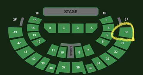 30구역 뒷열 간신히 잡았는데 여기 시야 너무 안 좋을려나?..ㅠ