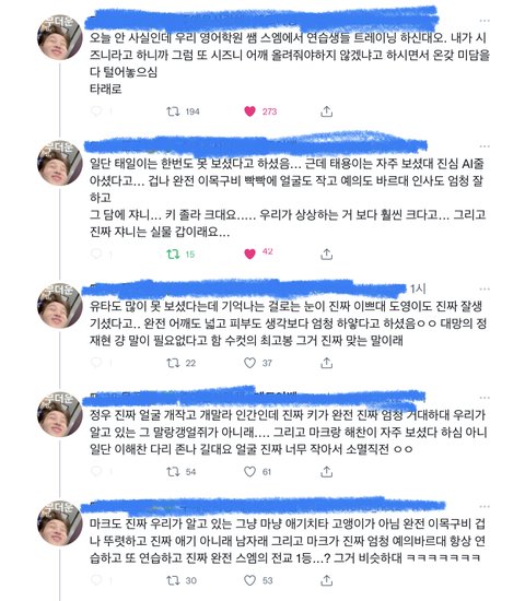 아 근데 난 저런거 전혀 안믿기는게 보통 선생이 학생한테 이런 얘기 안하잖아 오히려 입조심하는데... 특히 슴 영어 쌤 한 분 이잖아