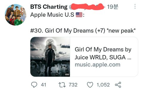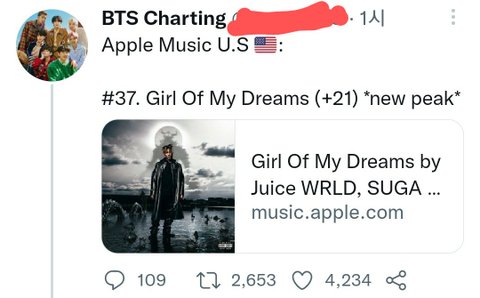 슈가 신곡 성적 해외에서 차트 순위 미쳤다