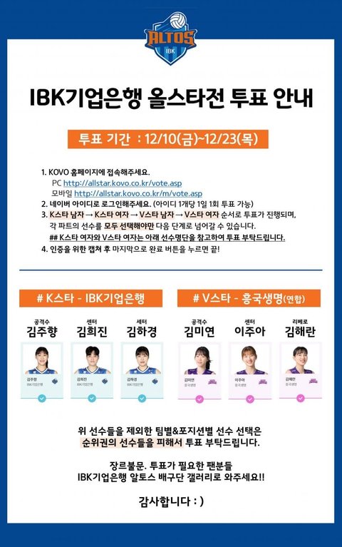 이번에 우리 배구 쪽에서 투표를 해서 인기순으로 올스타전을 진행하는게 있는데 우리 팀 투표가 아무래도 다른팀 투표에 비해서 많이 부족할 것 같아ㅜ