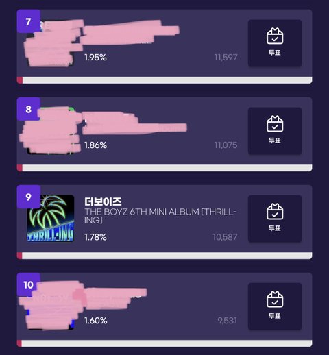 지금 7,8위랑 표 수 차이 진짜 얼마 안 나거든? 7위까지 올라가보자!