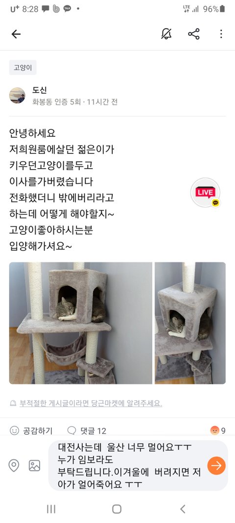 고양이 버리라네요 울산 화봉동