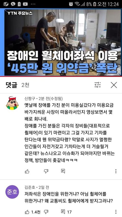 어제 유튜브로 저런 뉴스를 봤는데 휠체어만이 보조기구로 취급하고 그 외 다른 보조기구를 가지고 기차타면 위약금뜯어내는거 나만 어이없어? 아니면 내가 예민한가? 뉴스에 보도되고 난 후에 환불하는거 참...