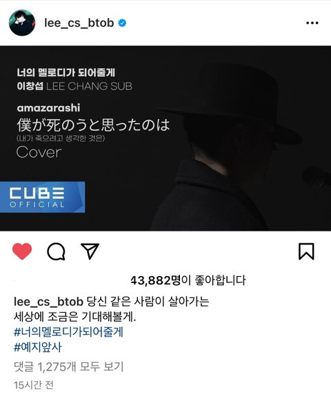 어제 비투비 공식 채널에 커버곡이 하나 나옴