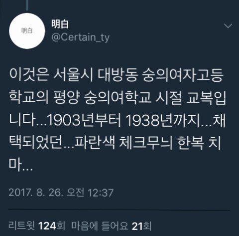 +일제강점기라는 말로 발작 일으키는 애들 많은 것 같아서 다시 정정하자면 저 교복은 구한말에 미국인 선교사가 지은 여학교 교복이야. 그리고 일제강점기에 한복을 입고다니는거 자체가 난 멋져보인다고 생각해서 올려본건데 베댓 꼬라지보고 좀 놀랐음…일단 정확히 말못해서 미안