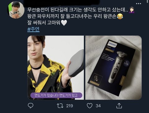주연이 면도기 팬분이 선물하신거래