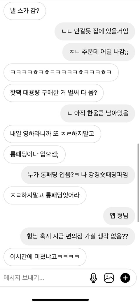 +)아니 이거 플러스로 사진 어케 올리는지 몰겠어서 그 뒤로 뎀 한 내용 대충 요약하자면 나도 얘가 나 진짜 좋아하는건지 떠볼려고 스카 갔다가 집 새벽 2시에 온다고 했는데 걔가 처음엔 미쳤냐 이런식으로 같이 올 친구 없냐 이래서 없다니까 지가 온다그럼 근데 이게 이렇게 글로 보면 남사친 아닌 거 같고 오글거리는데 그런 말투가 아니라 저 위 사진 말투처럼 아 그럼 또 내가 가줘야지 이런식었거든? 그래서 일단 희망가지고 더 지켜보려고…ㅋㅋㅋ 아무래도 너무 오래된 애다 보니까 막 고백하고 이러기가 좀 그래…