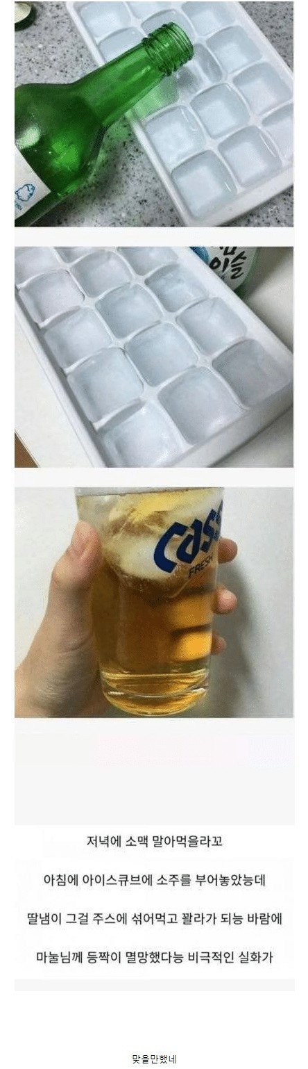 얼음 얼렸다가 마누라한테 뚜까맞음