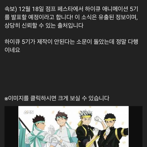 하이큐 5기 얘기도는거 실화가?????