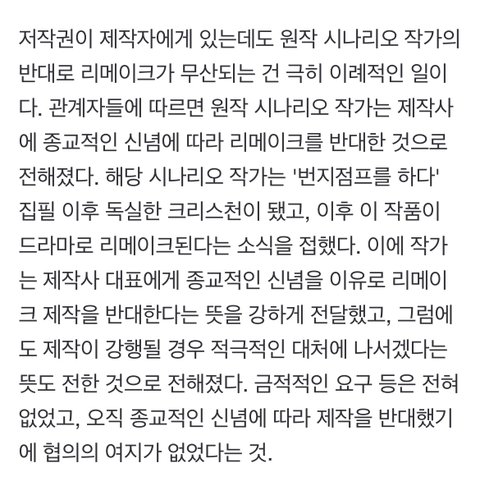 종교적인 신념을 이유로 리메이크 제작을 반대한다는 뜻을 강력하게 전달했었다고 함