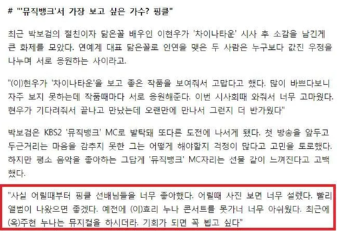 과거 한 인터뷰에서 핑클팬이었다고 밝힌 박보검