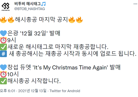 오늘 밤 9시, 10시에 은광, 창섭 해시 총공