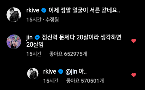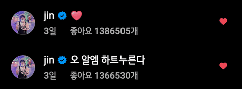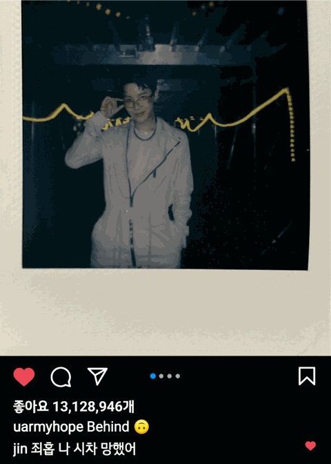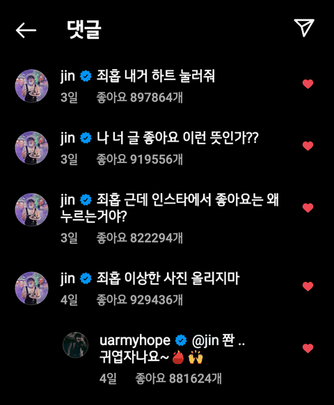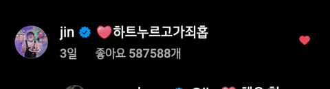 인스타 감성 따위 모르겠고 쫑알 쫑알 거리며 멤버들한테 댓글 달고 다니는 귀여운 진 ㅋㅋㅋㅋ