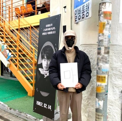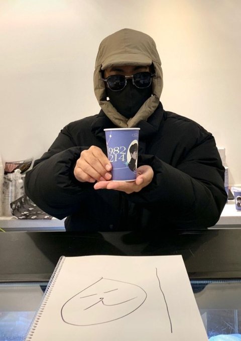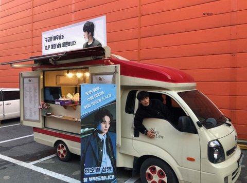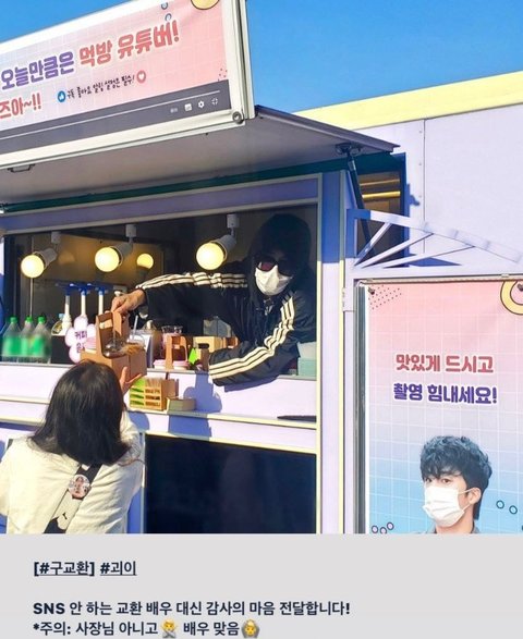 과거 D.P 촬영 때 처음으로 받은 커피차를 이렇게 인증한 구교환