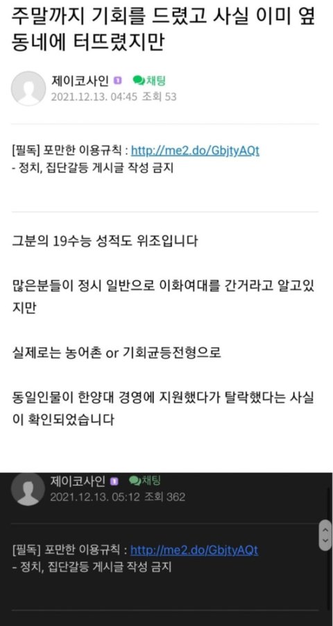 판에서 맨날 이대 라인 이야기 나올때마다 명예 이대생들이 공부 유튜버 중 한양대 버리고 이대 간 사람있다고 염불하던데 이 분이었음?