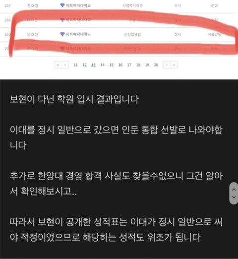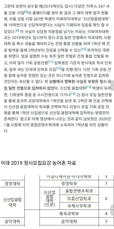 보현 수능 점수 위조 뿐만 아니라 이대도 정시로 간게 아니라는데?ㄷㄷ